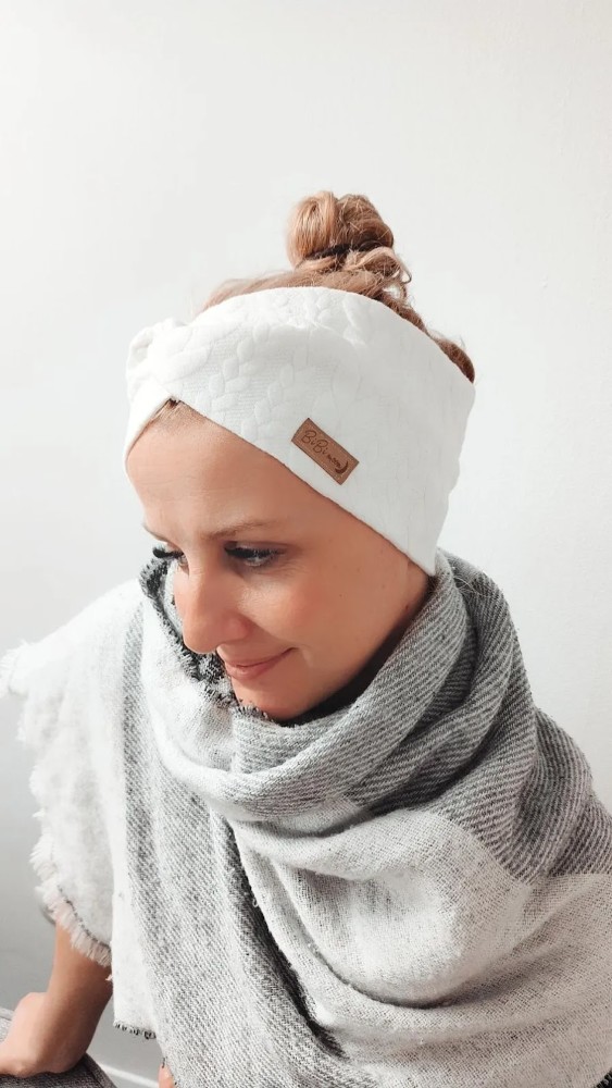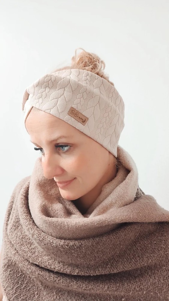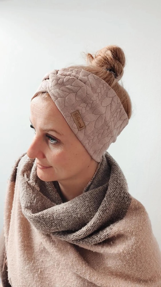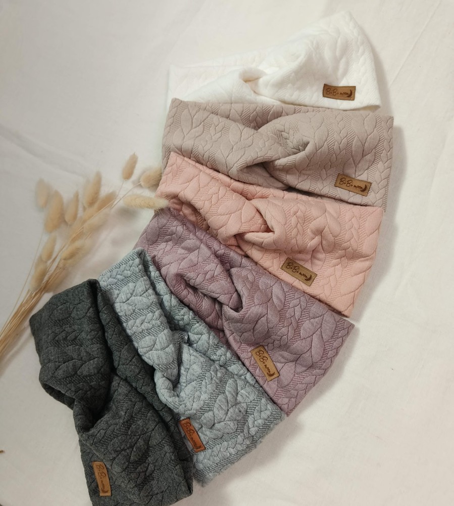 Sestava je reliefna debelejša pletenina (80 % Bombaž, 15 % Poliester, 5 % Elastan). Zaradi gostega in debelega tkanja je trak toplpejši.